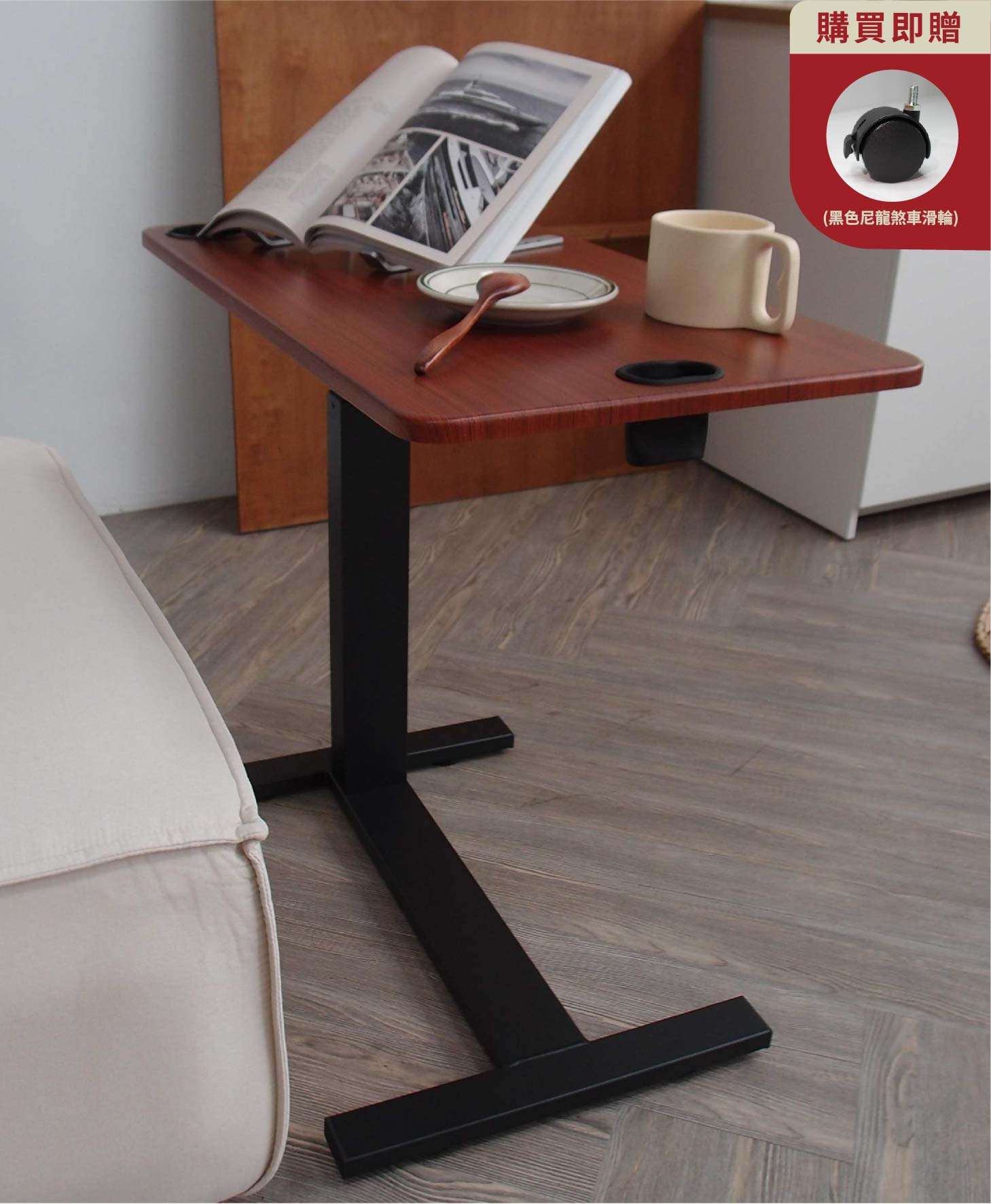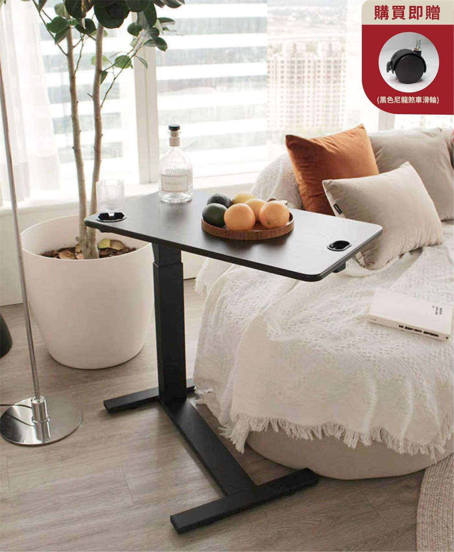 極簡手動式升降邊桌(懶人桌/床邊桌/餐桌/沙發桌/筆電桌) 無段式靈活運用,貼近你的需求!