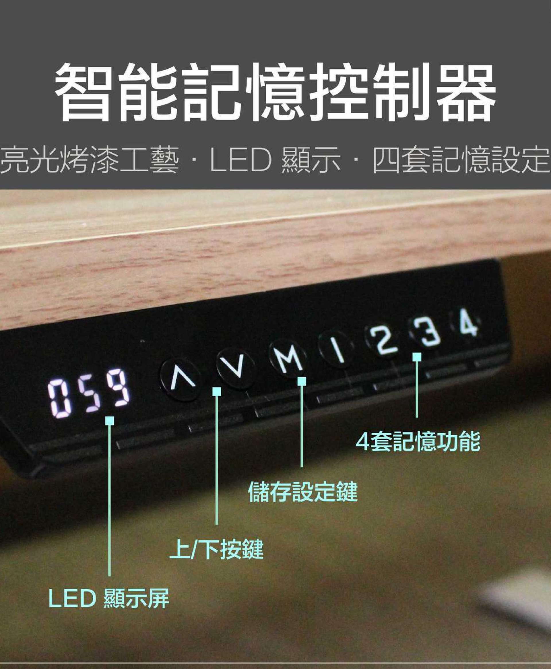 控制面板:上下鍵以及具備四組常用高度記憶鍵