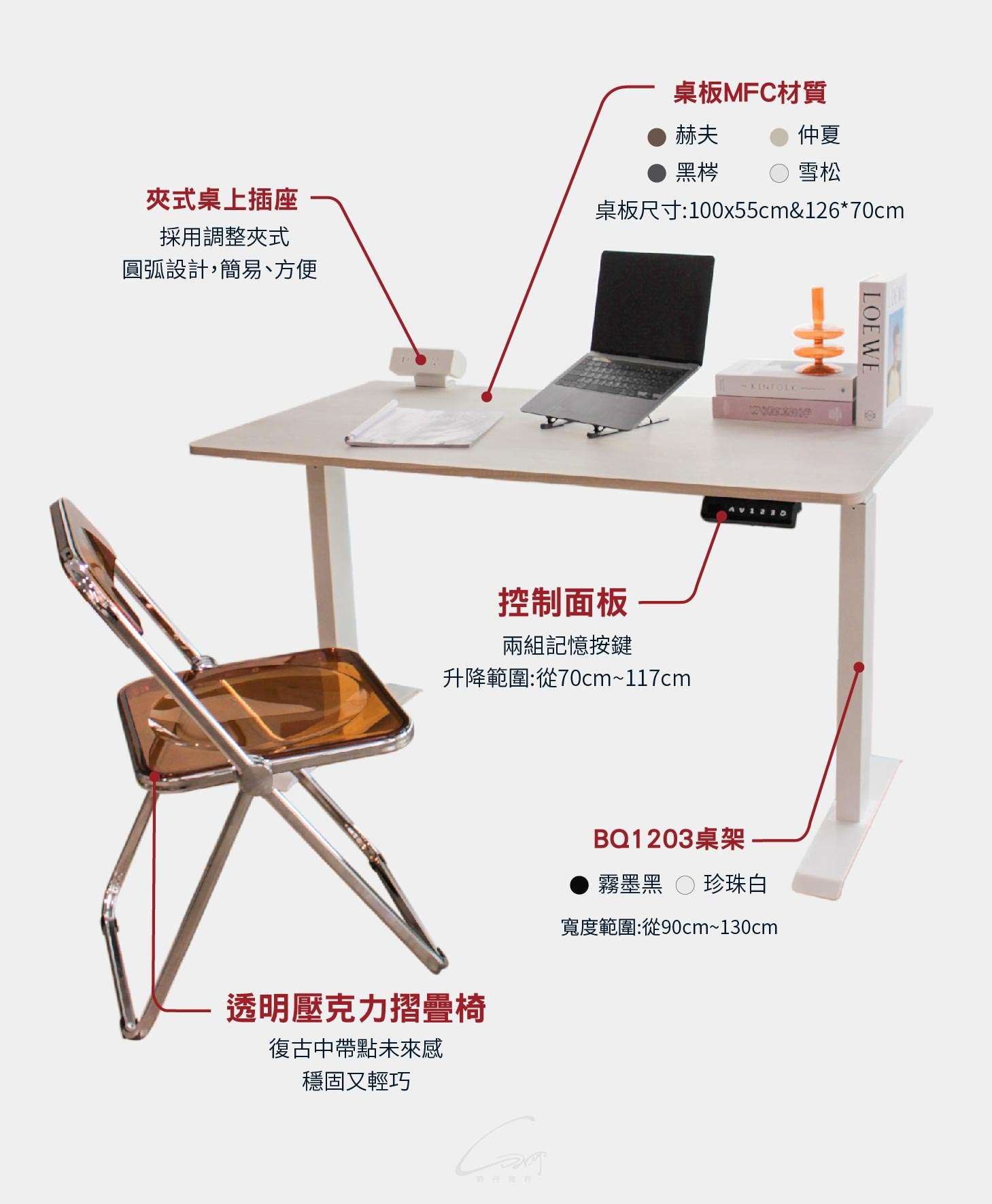 BQ1203 簡裝款|極簡安全電動升降桌|霧墨黑