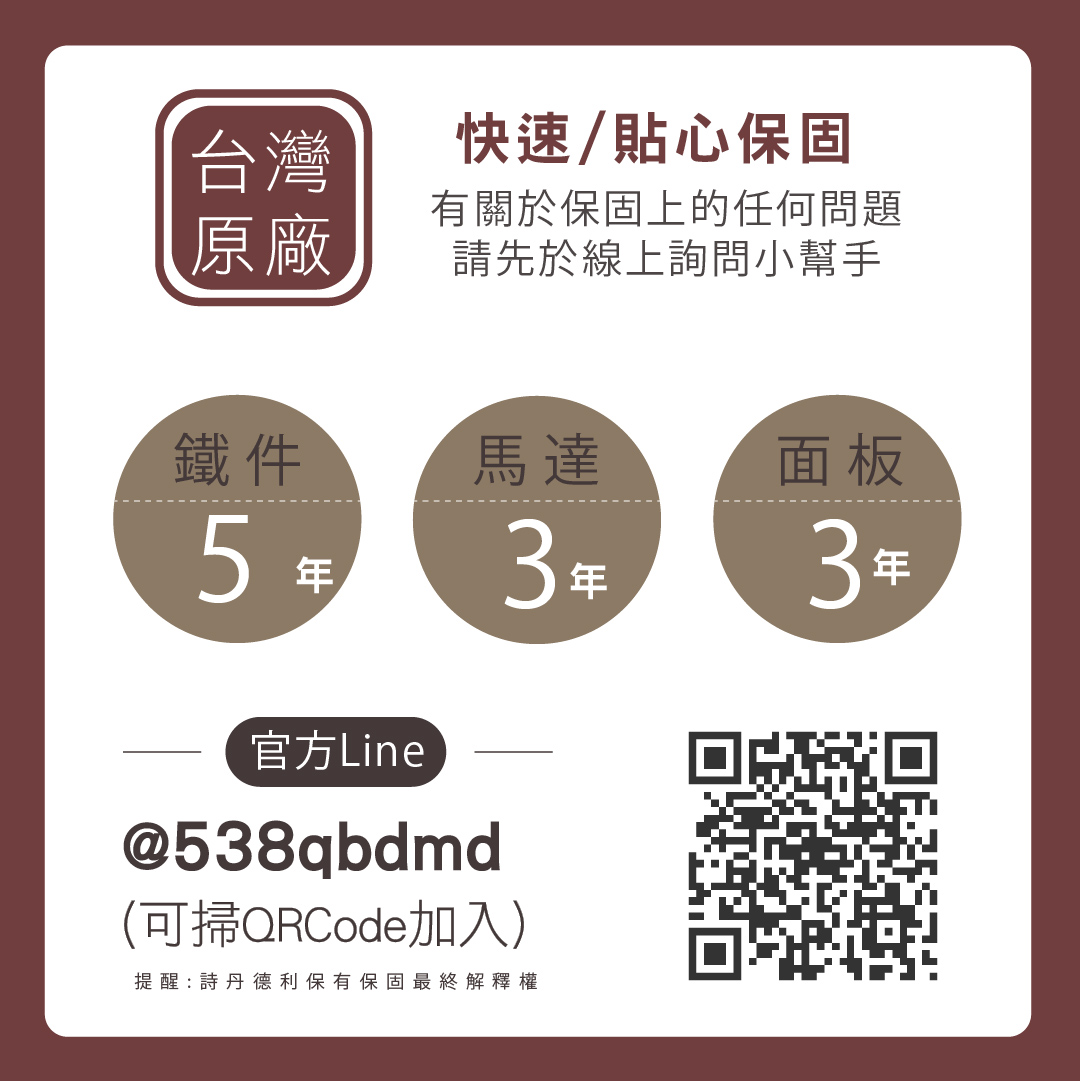 桌架鐵件5年 / 電控面板3年 / 馬達3年