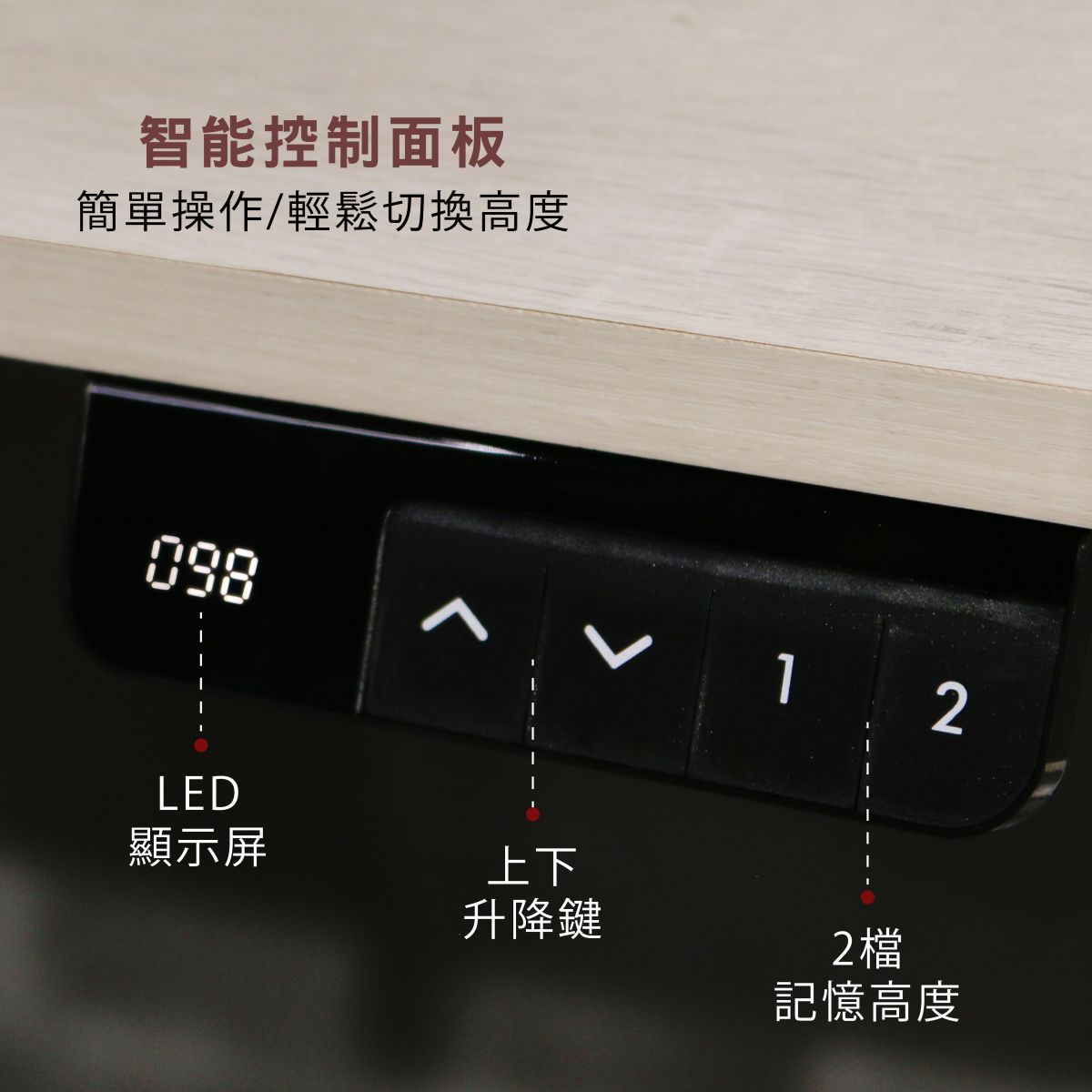 控制面板:上下鍵以及具備2組常用高度記憶鍵