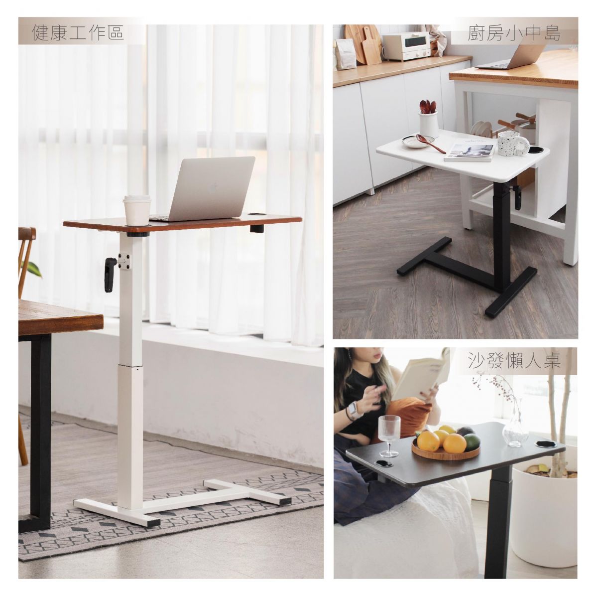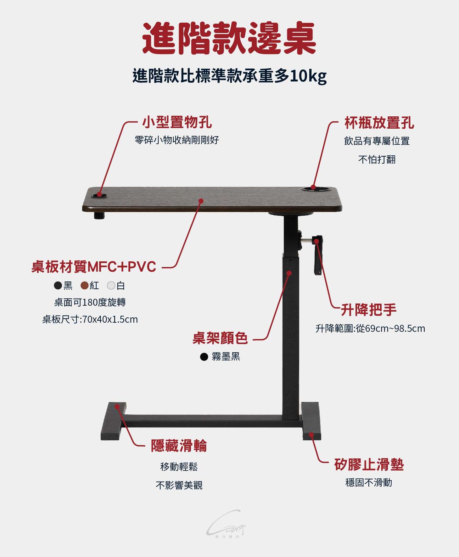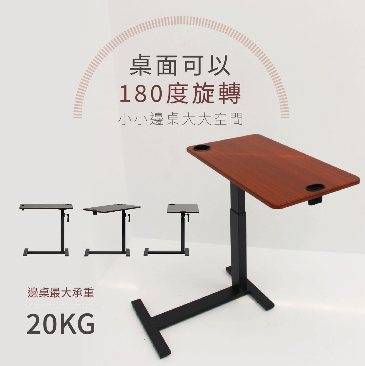 【HOT熱銷】輕系列-桌面180度旋轉款-隱藏滾輪升降邊桌|年度銷量第一! (進階黑桌架)