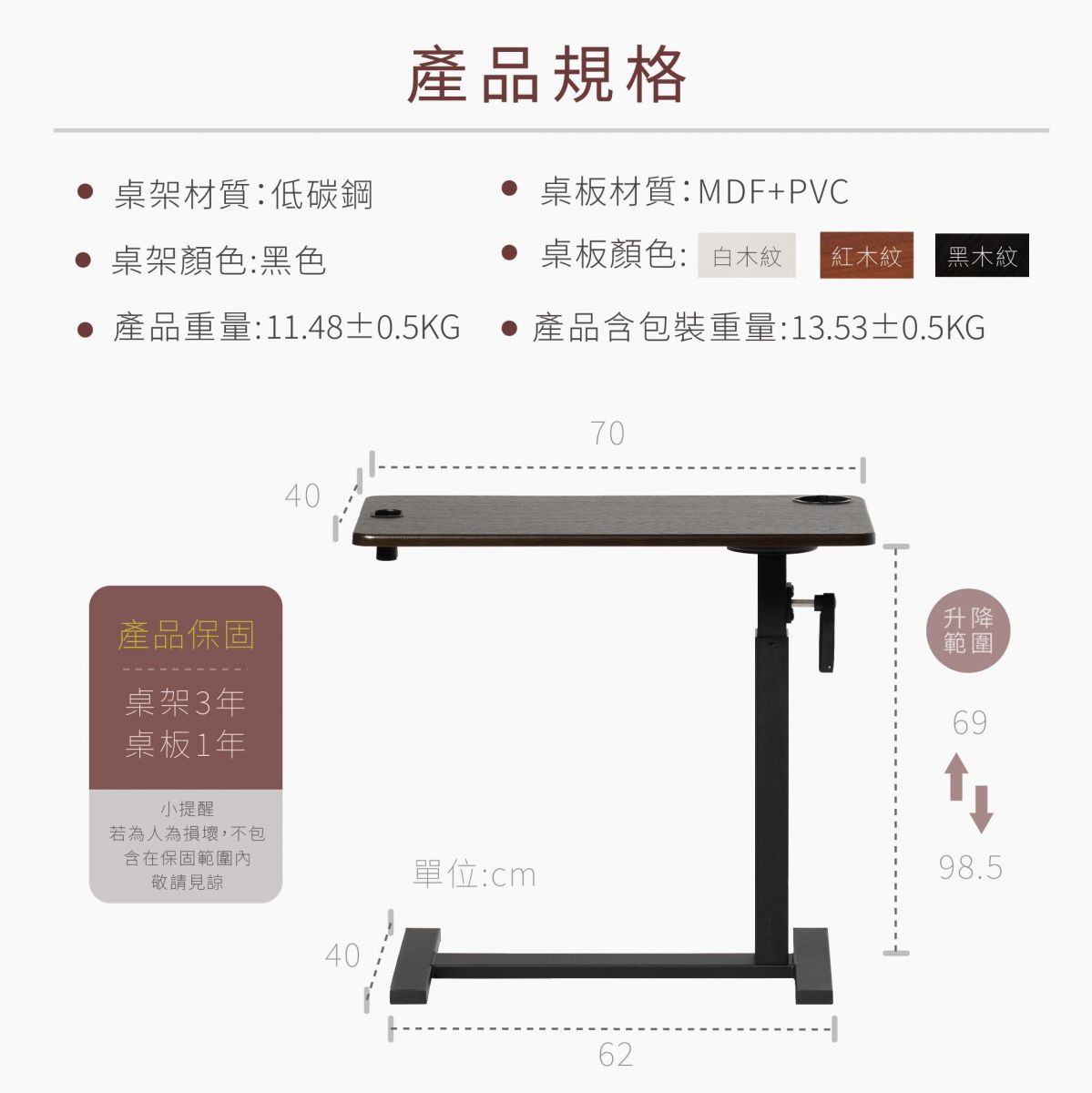 @ 邊桌保固 : 1年