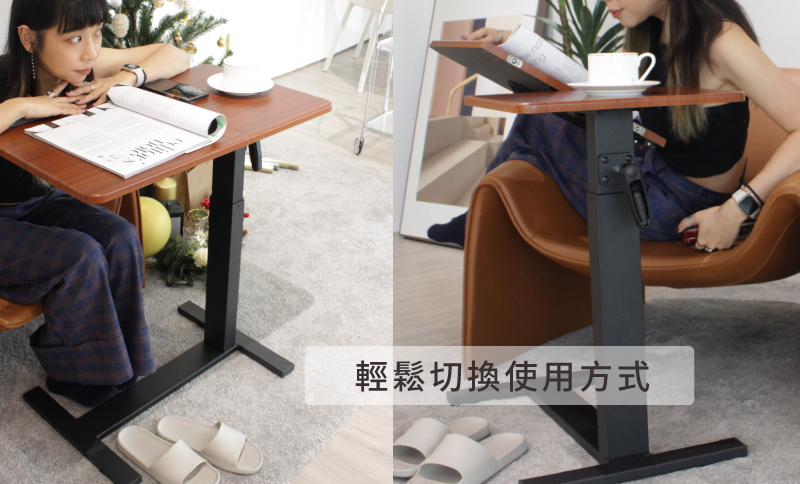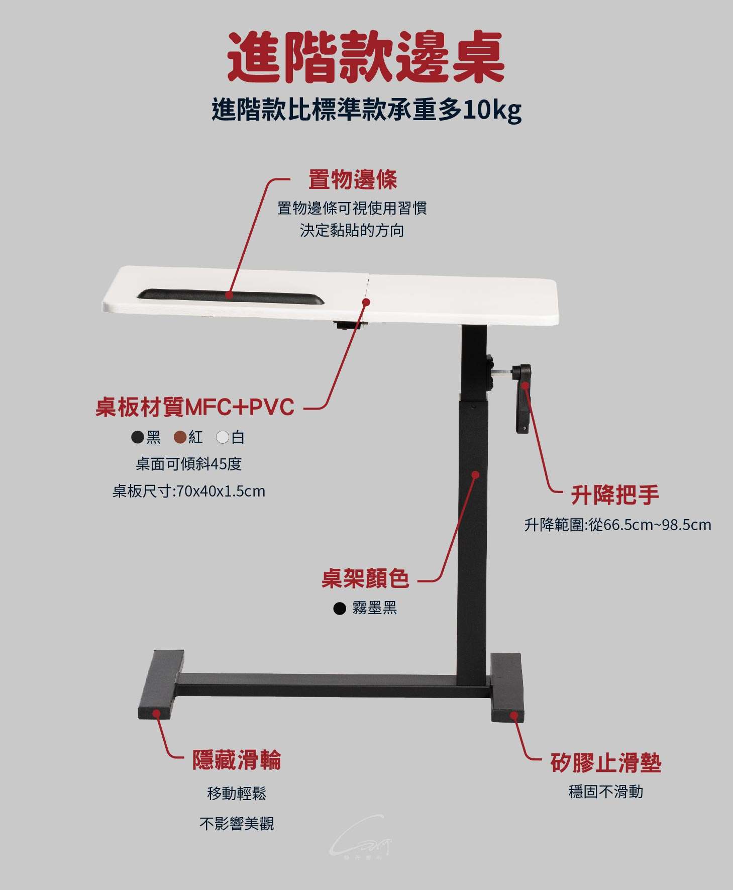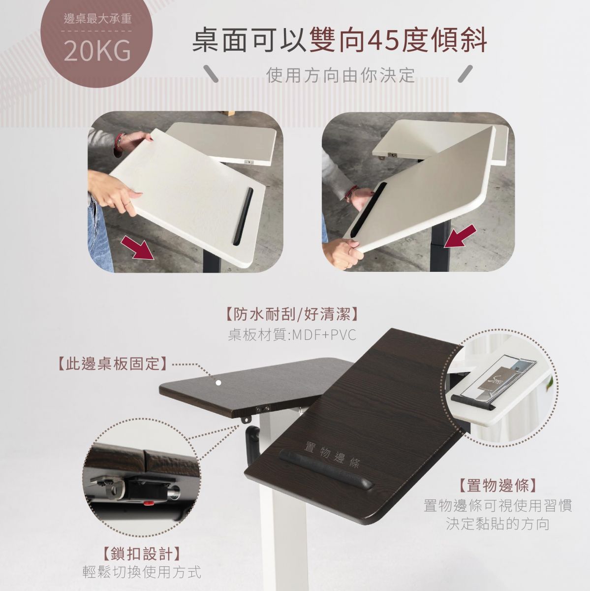 【HOT熱銷】輕系列-可傾斜45度/隱藏滾輪升降邊桌(進階黑桌架)