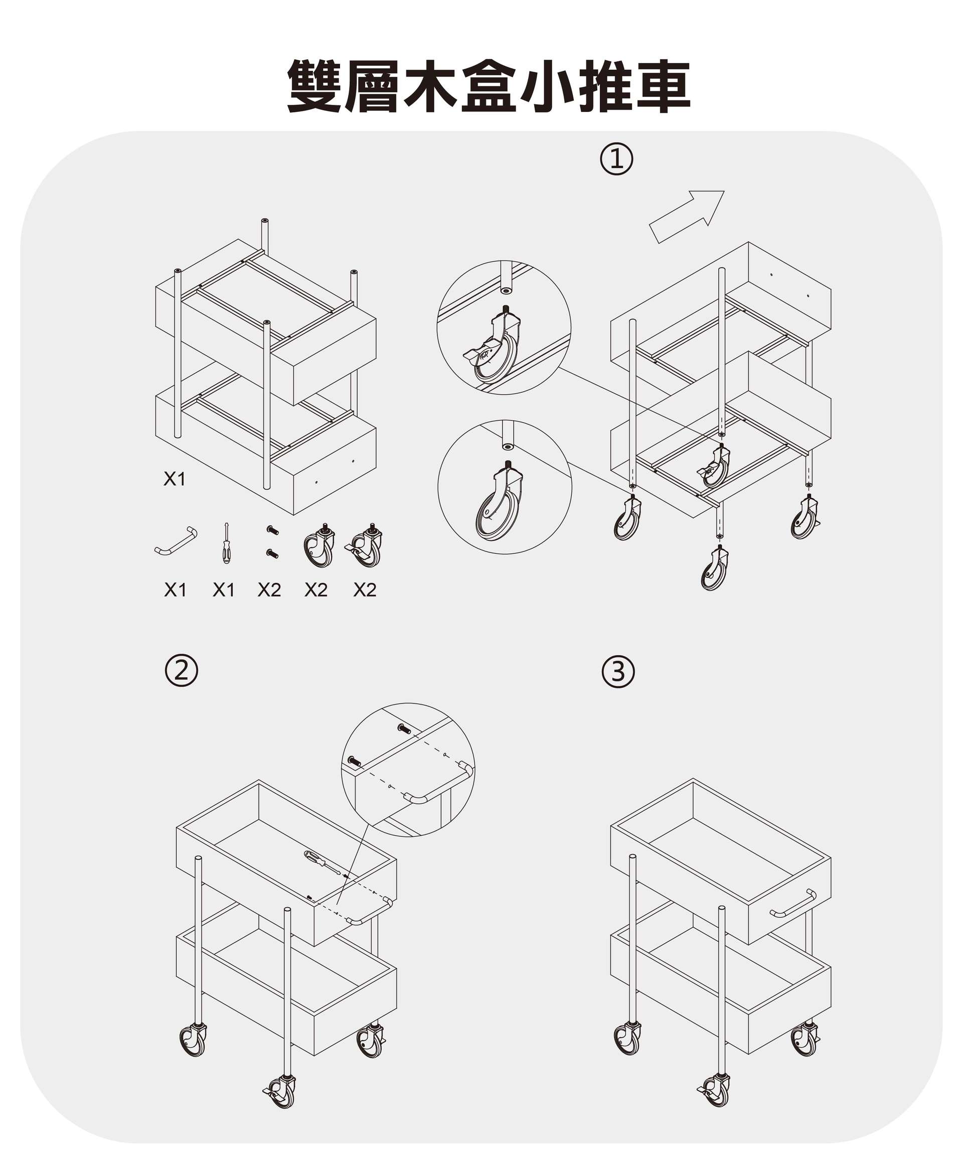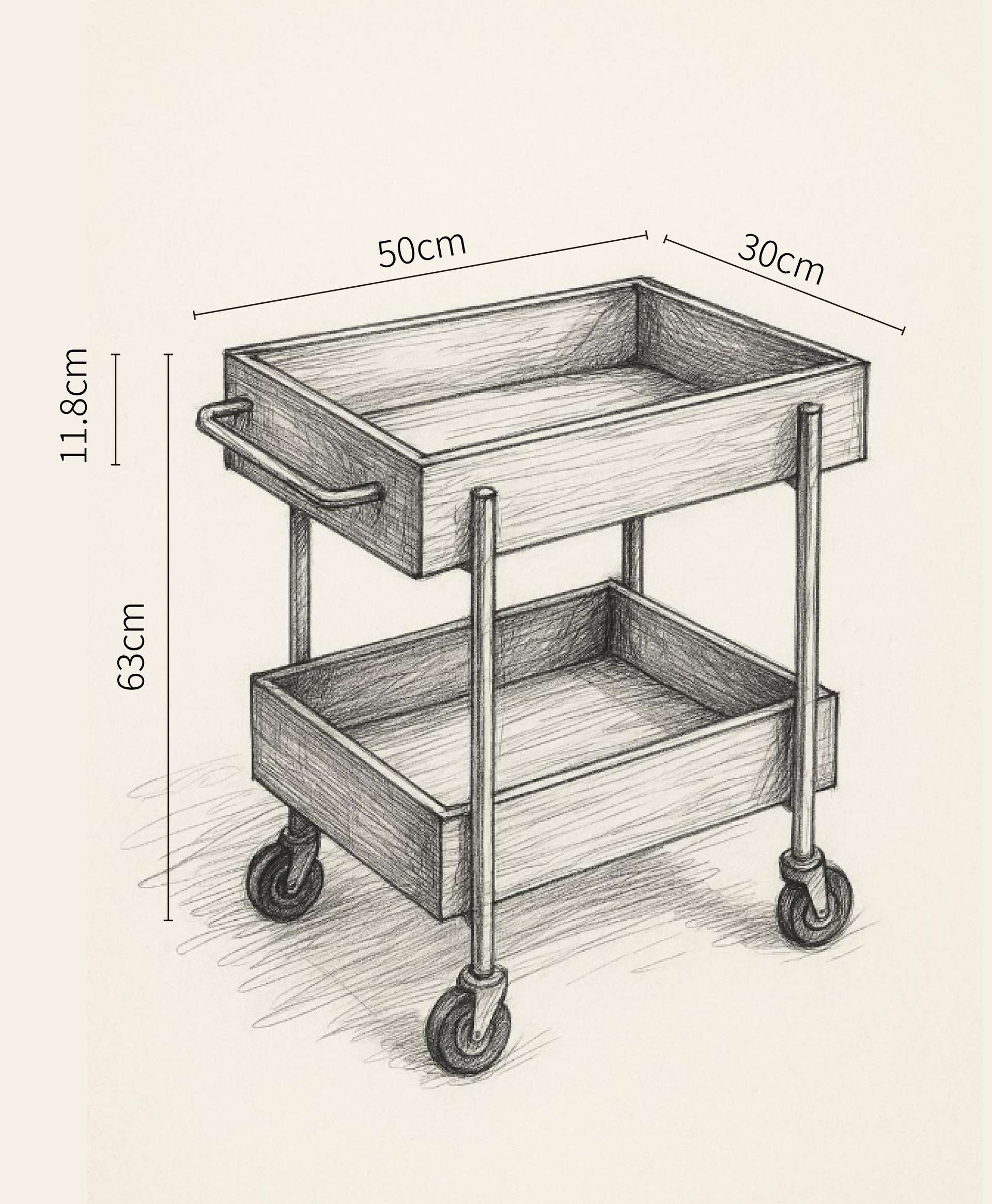 【雙層木盒小推車】- 橡膠實木 50 x 30 x 63cm