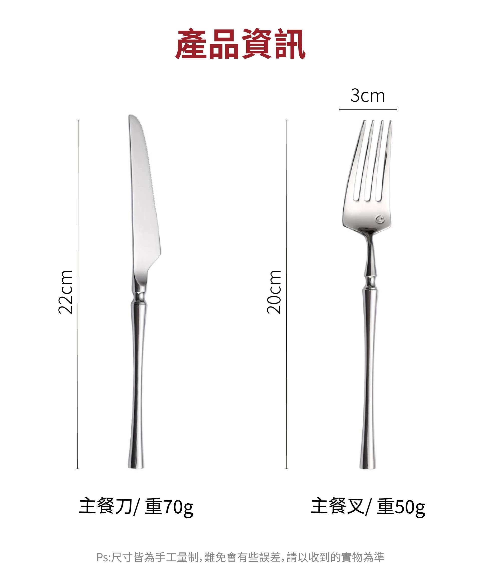 主餐叉:20 cm、3 cm 寬、50 g