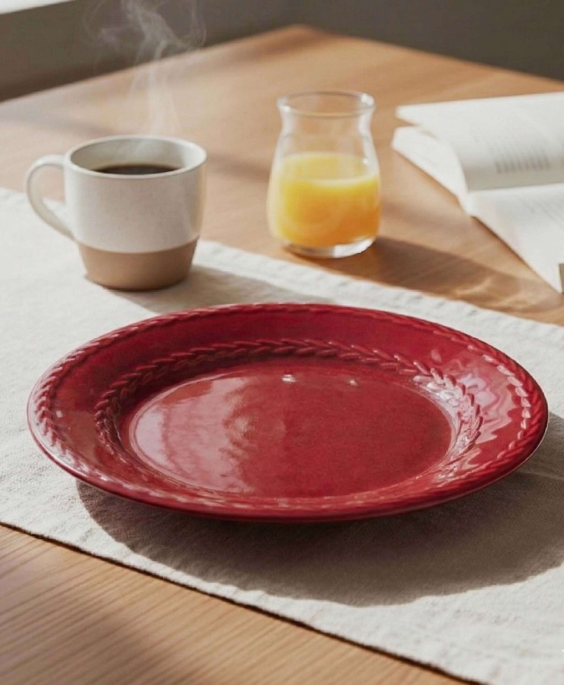 【陶瓷盤】壁爐旁的酒紅編織盤 21.5cm