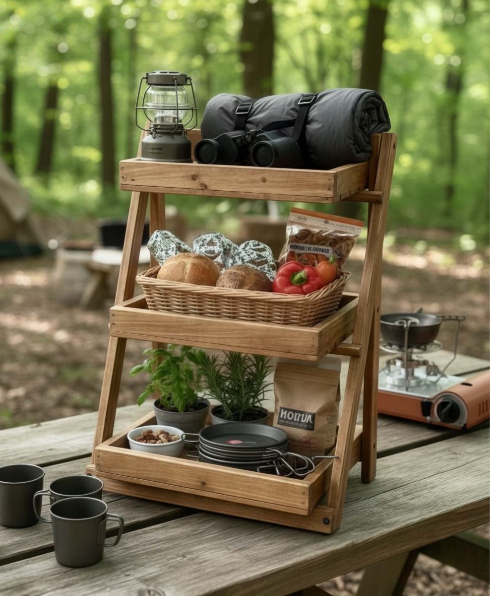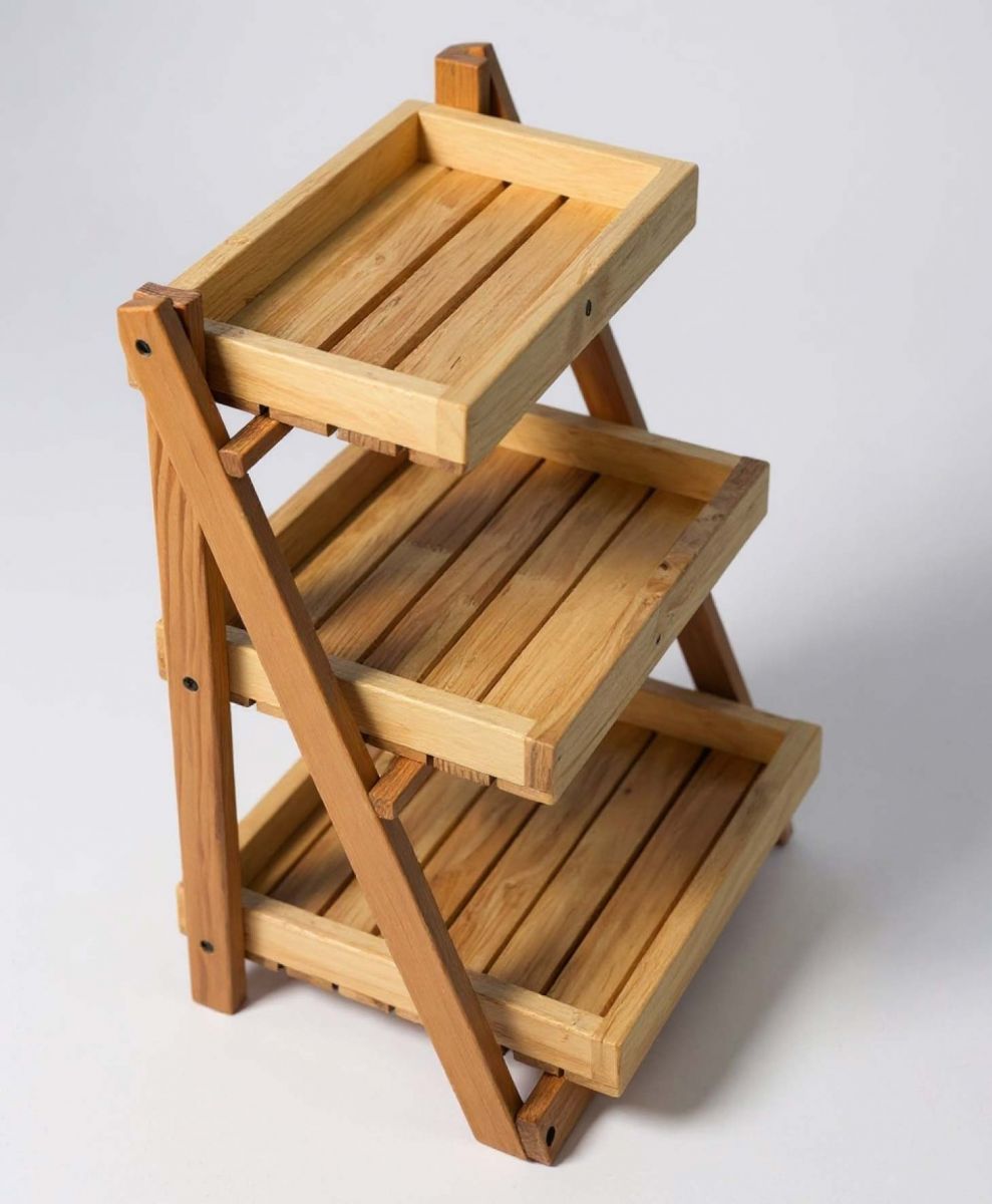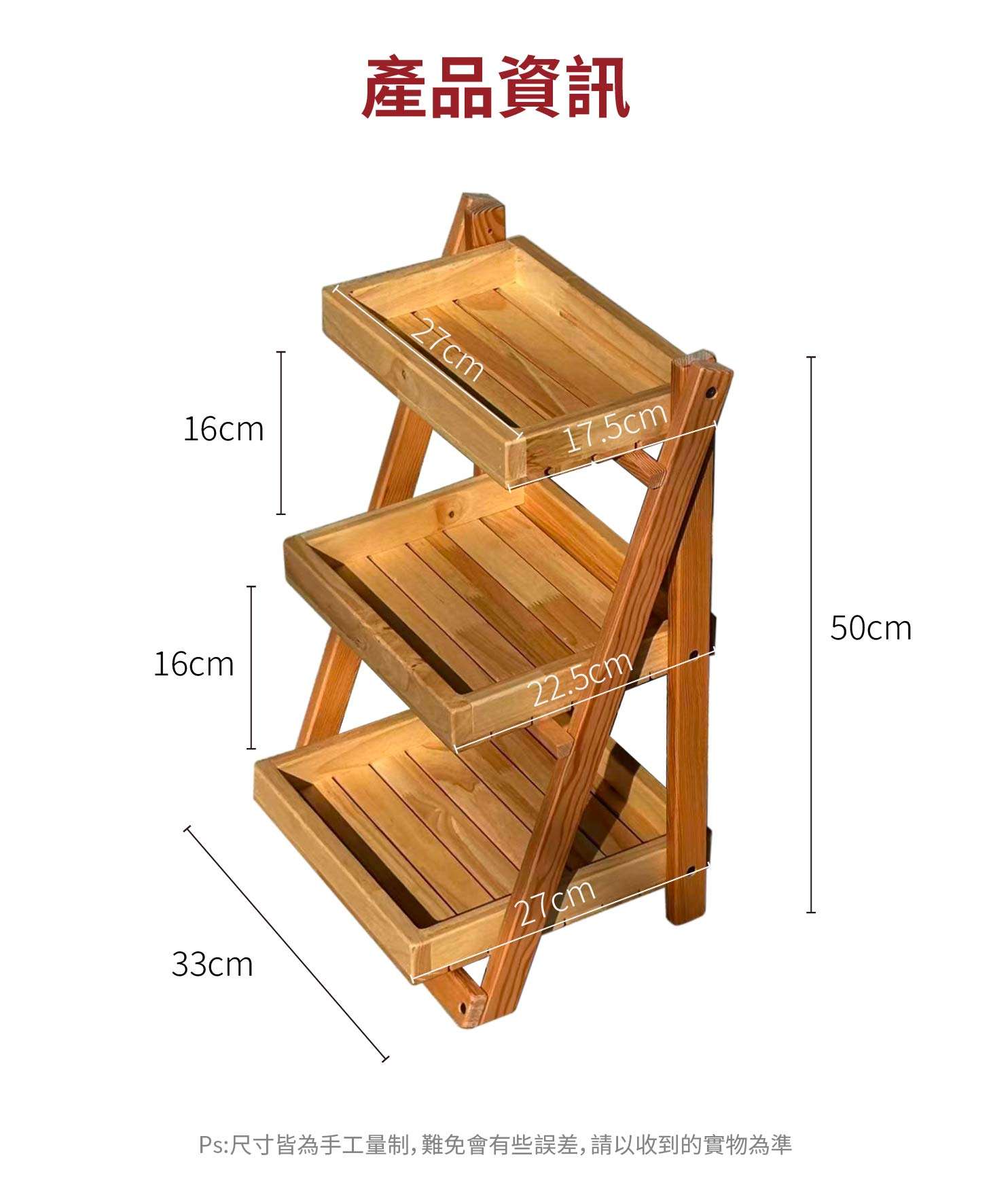 【象牙花旗折疊三層架】- 象牙木+花旗松木 33 x 27 x 50cm