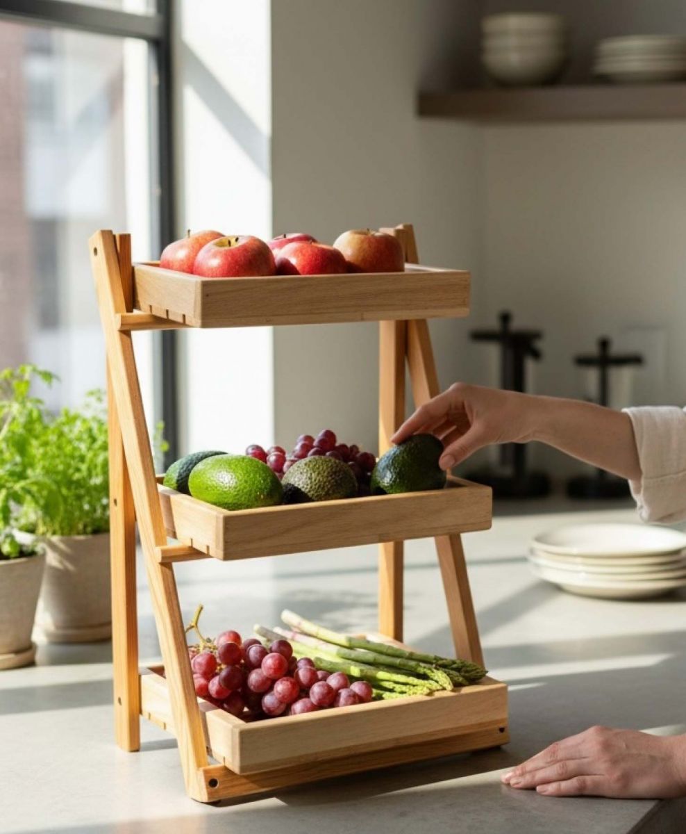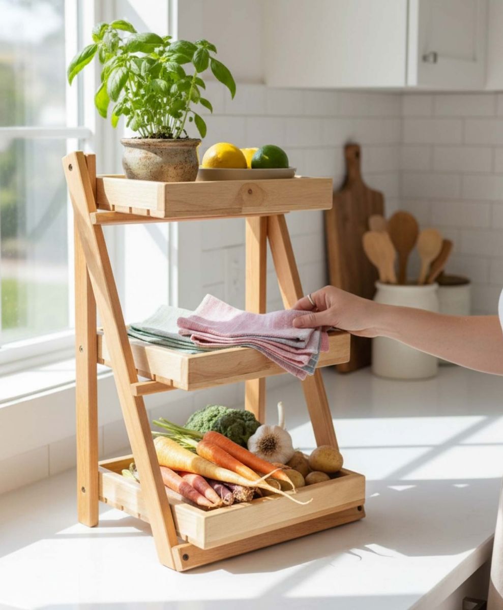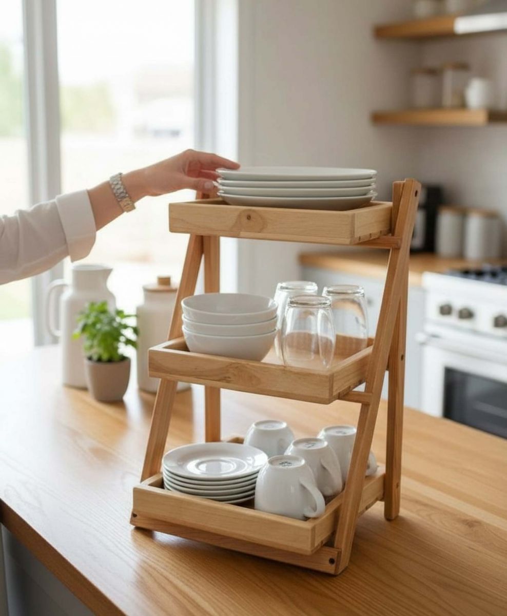【象牙花旗折疊三層架】- 象牙木+花旗松木 33 x 27 x 50cm