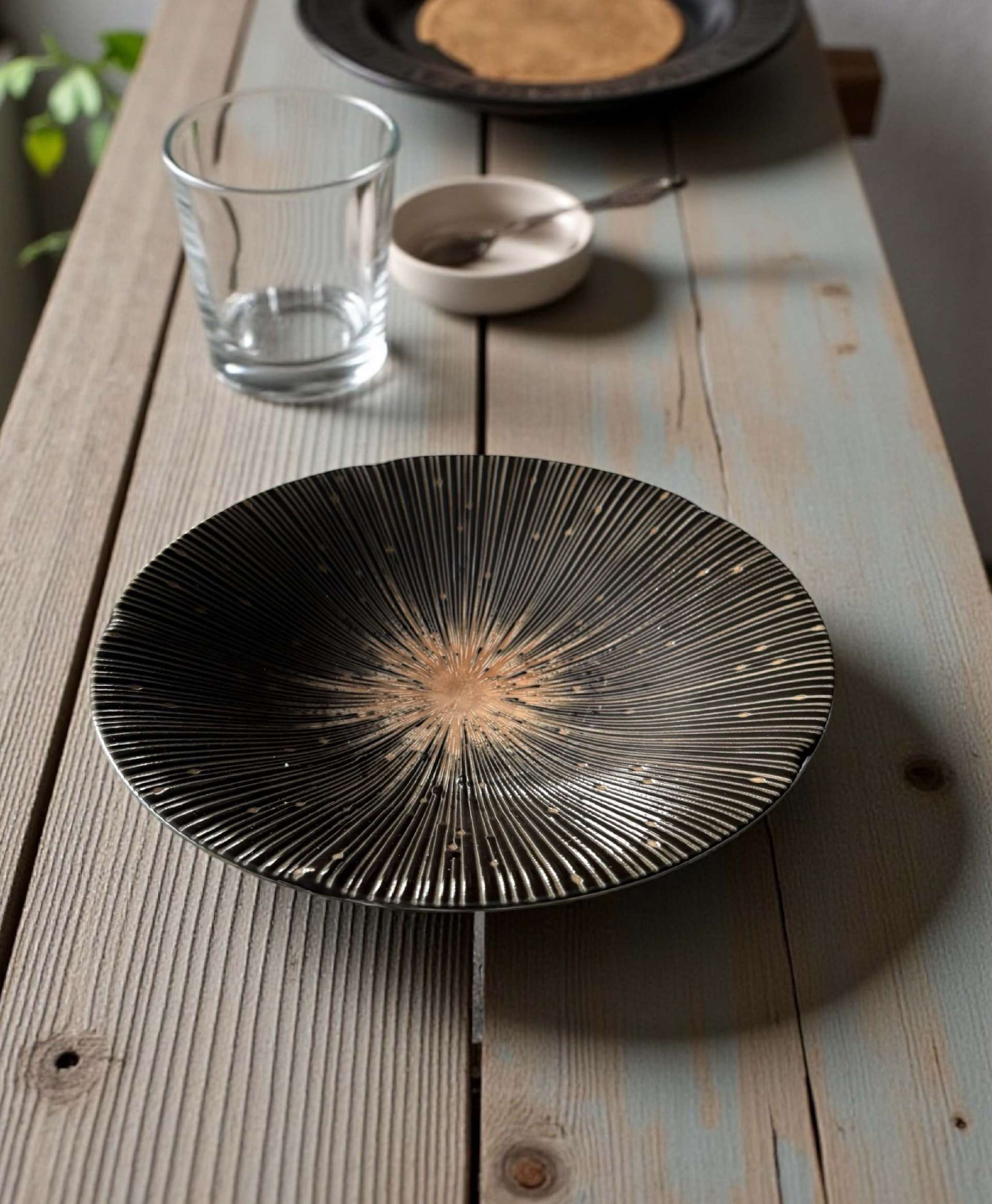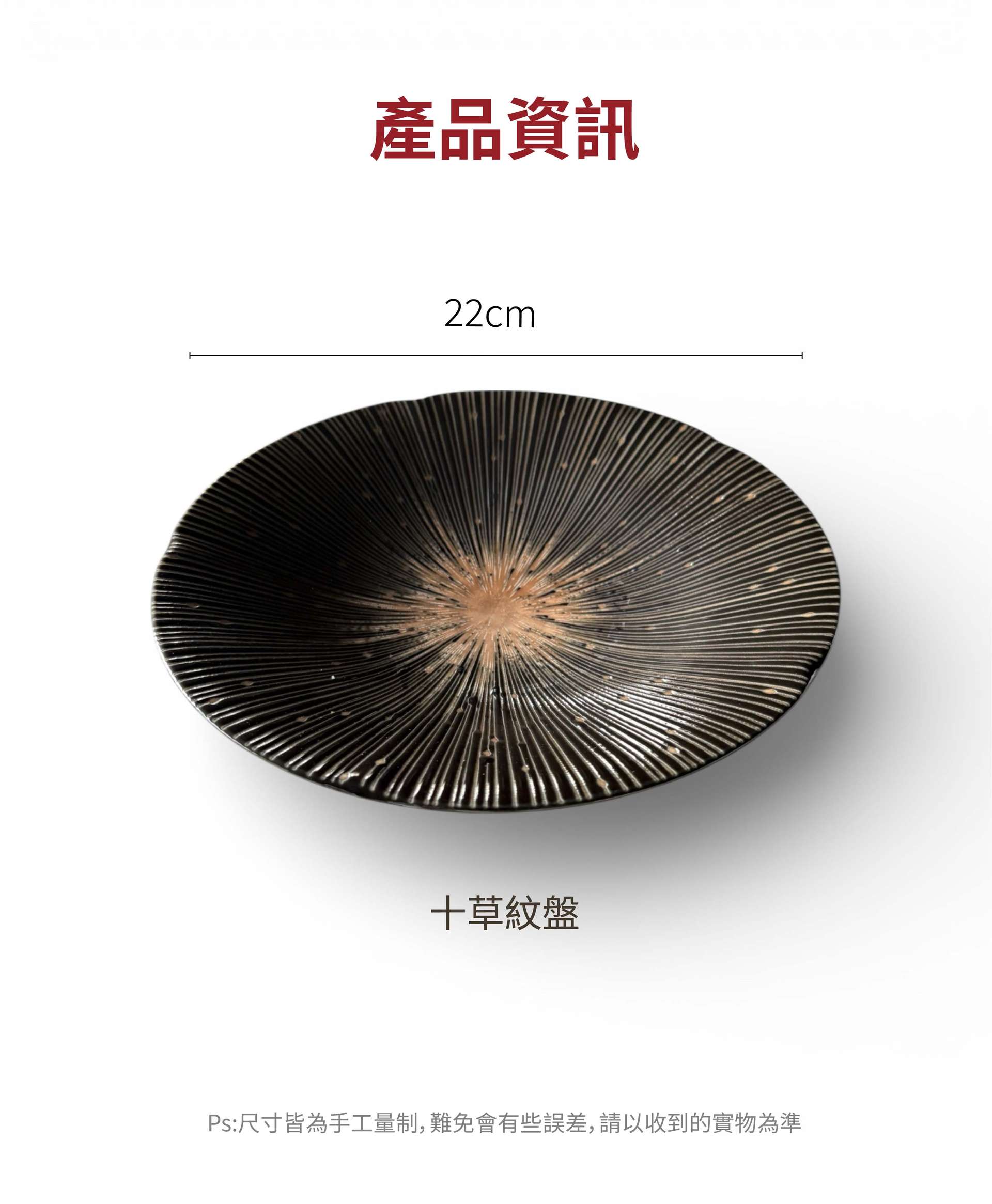 NEW【陶瓷盤】十草紋黑盤 22 cm