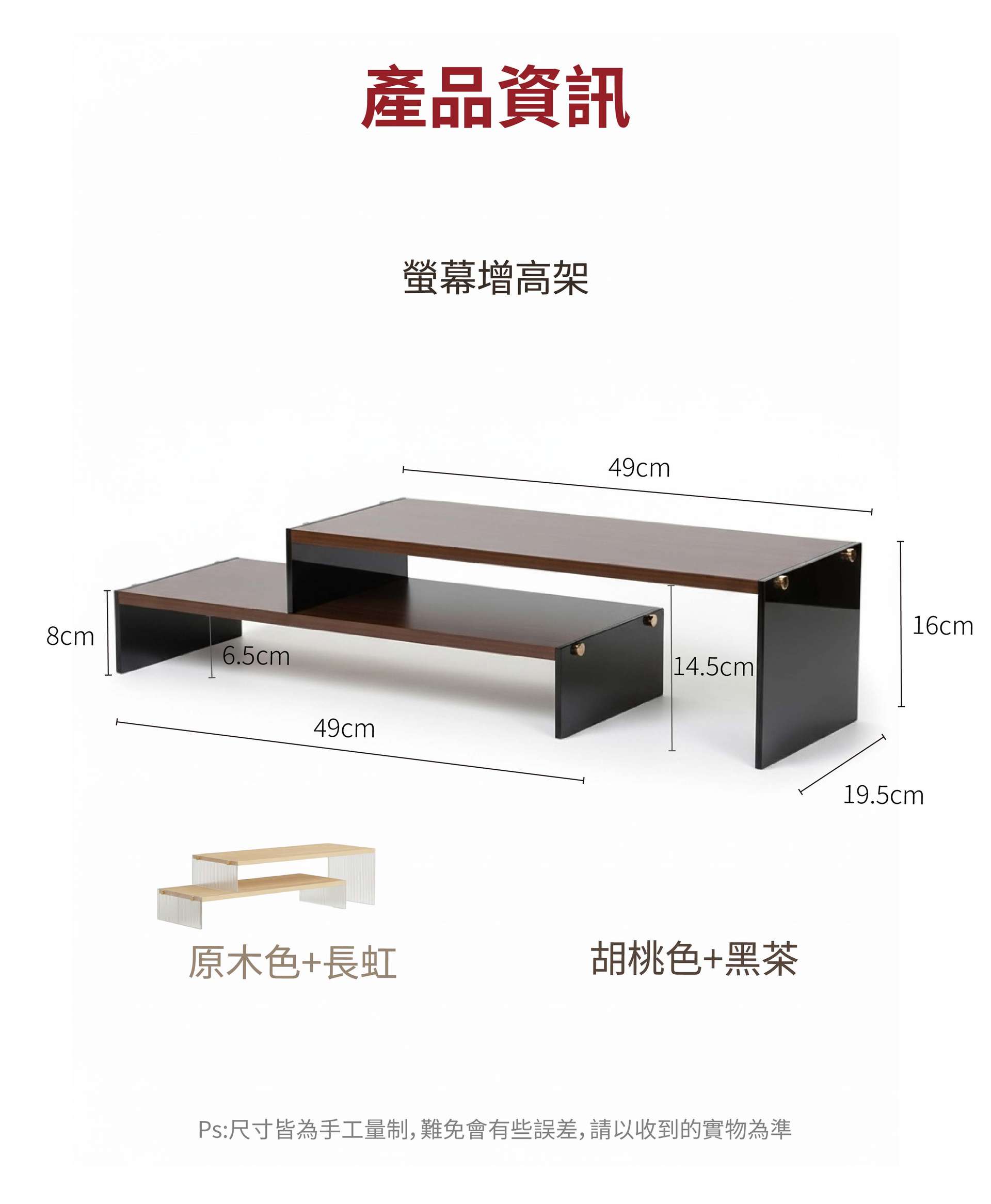 NEW【螢幕增高架】- 雙層可調節款 原木色+長虹 /胡桃色+黑茶 - 49 x 19.5 x 16 (8) cm