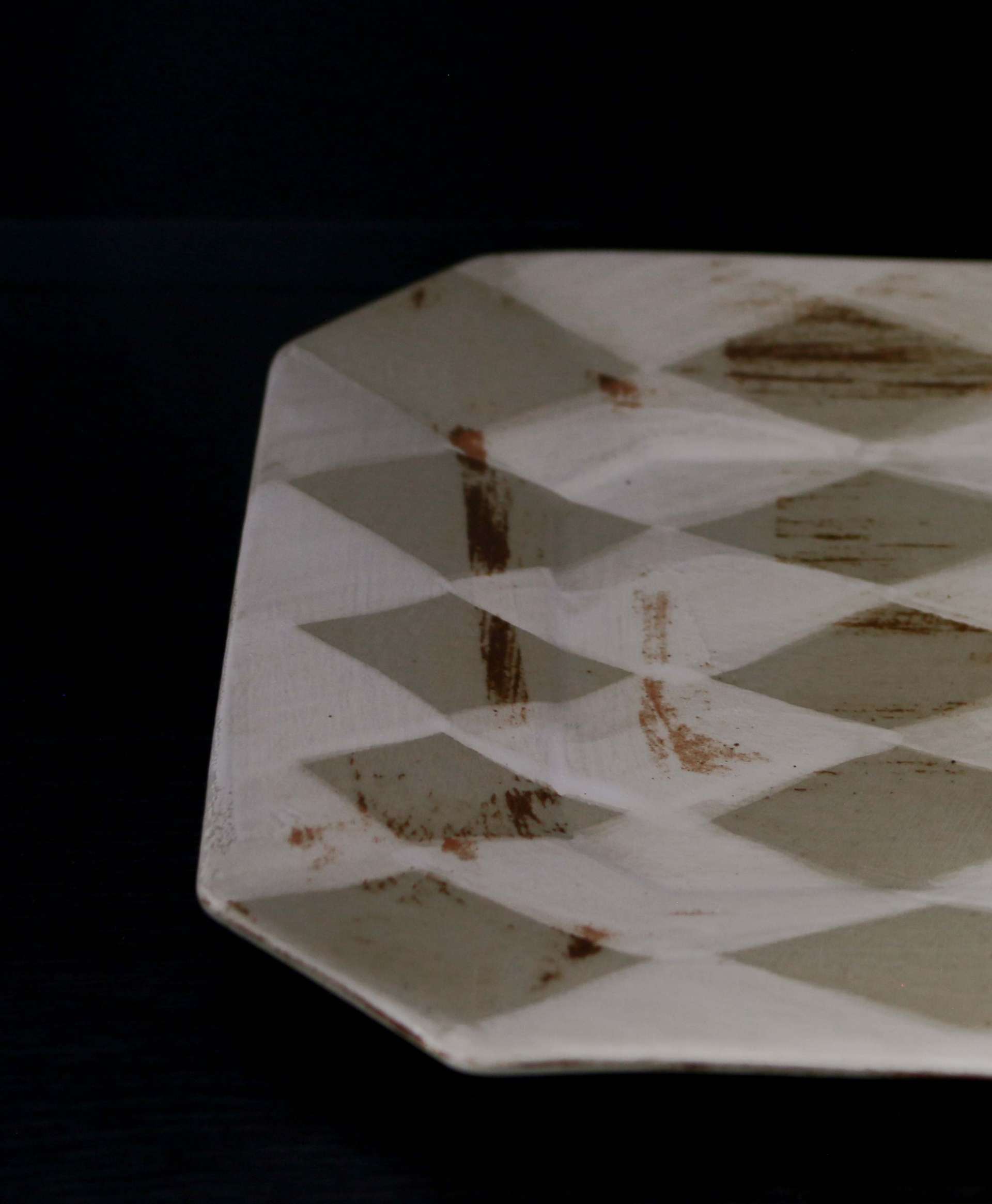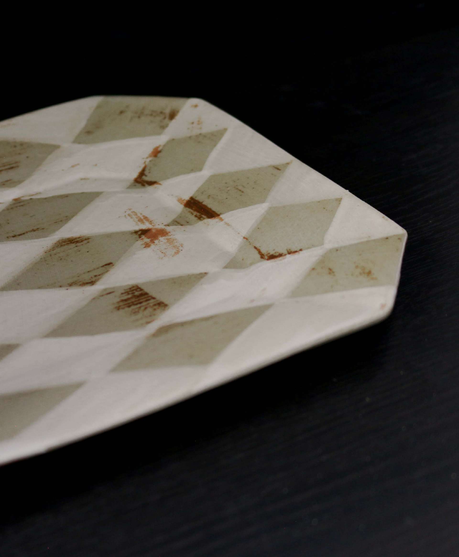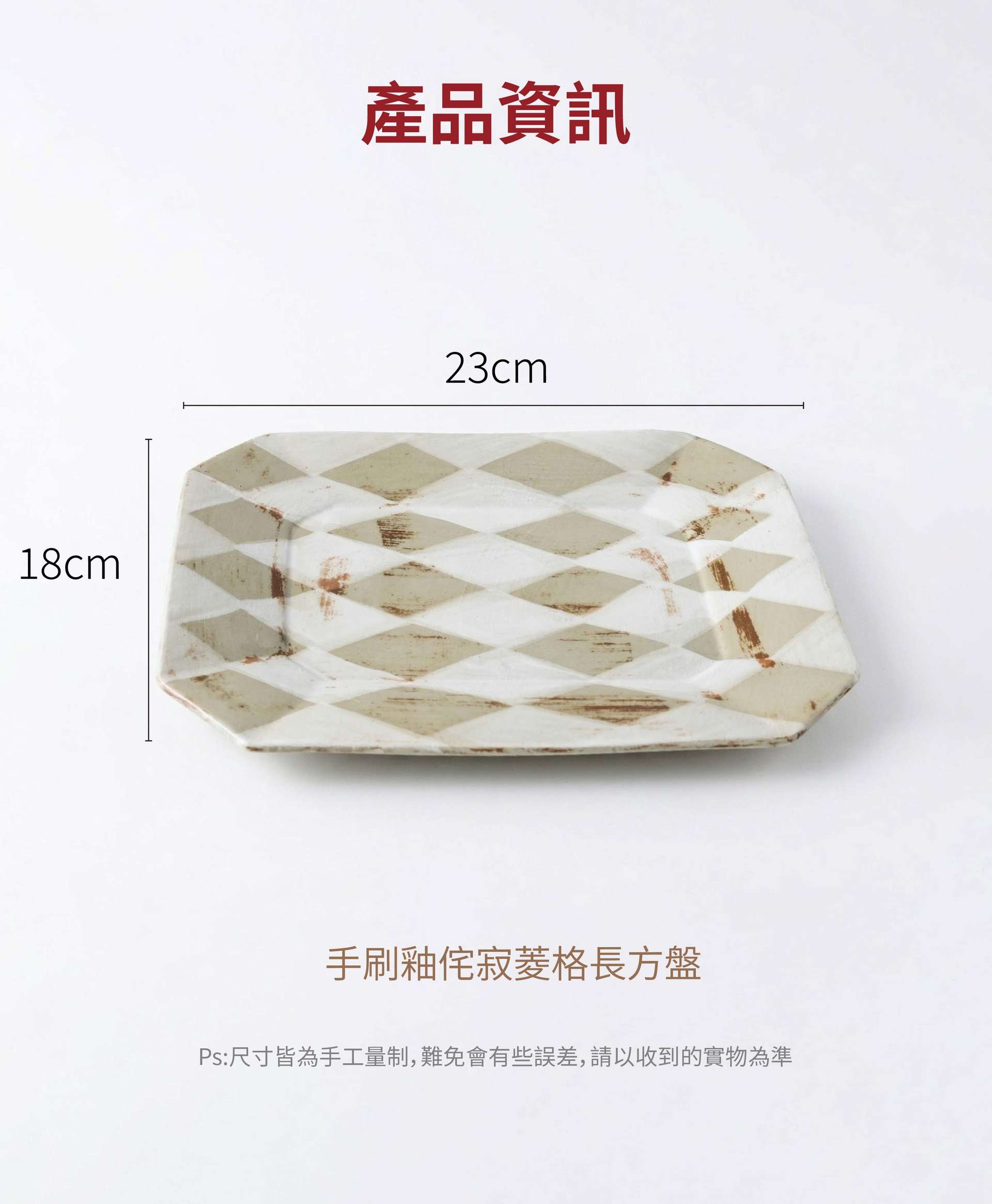 NEW【陶瓷盤】手刷釉侘寂菱格長方盤 23 x 18 cm